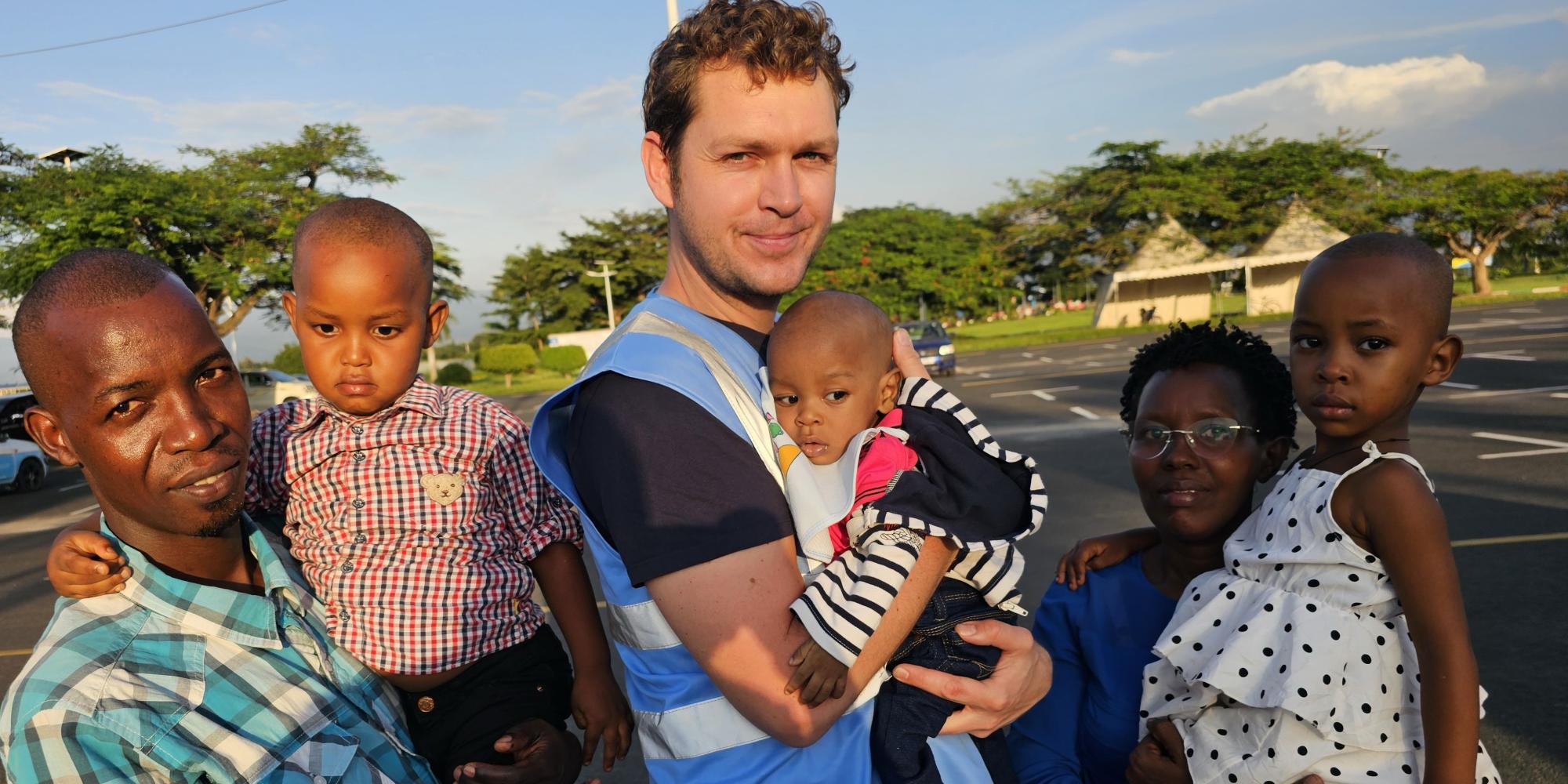 Hugues was not in good shape and cried a lot during the flight. Thibault walked many kilometres in the plane to calm him down. The Brussels Airlines crew did everything they could to make this long flight as pleasant as possible.