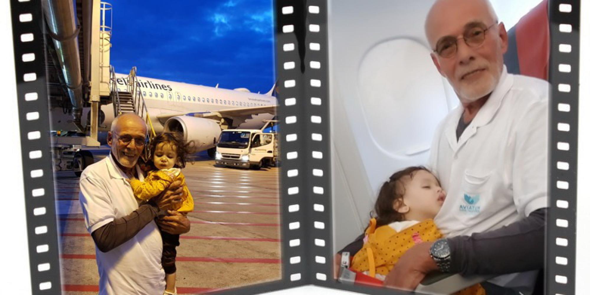 A peine installée dans l’avion elle s’est endormie en toute confiance et a fait un bon voyage vers la guérison.