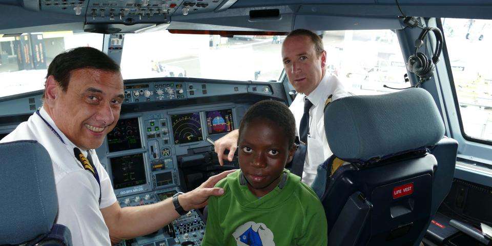 27 april 2019Voor het instappen aan boord van de vlucht Kigali-Brussel, monteert Sharomo het vliegtuig dat Kurt, vrijwilliger bij Piloten Zonder Grenzen, hem heeft gegeven. Een mooie betrokkenheid gedurende de lange vlucht met een zeer sympathieke bemanning van Brussels Airlines. De bagage is ook goed aangekomen! -