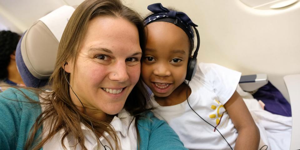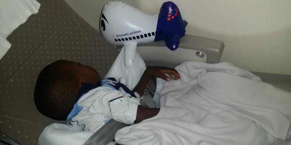 30 mei 2019Het is moeilijk aan boord te gaan van een groot vliegtuig dat opstijgt zonder je ouders en uit Kigali te vertrekken. Maar met een lekkere lolly gaat het al beter en na de operatie zal het nog beter gaan. Met dank aan Martine voor de begeleiding en aan de bemanning van Brussels Airlines voor hun vriendelijkheid. -