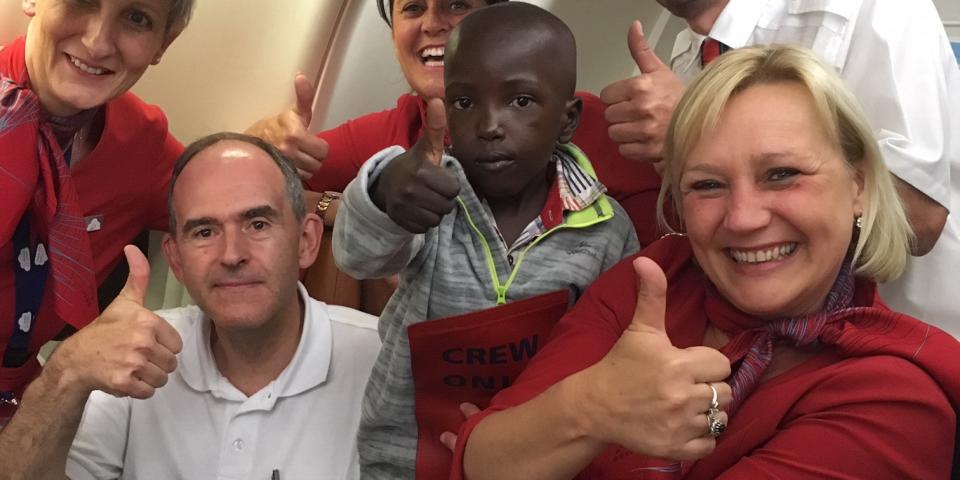 23 maart 2019Hij is uit Kigali teruggekomen met Shilo (11 maanden) die door de Keten van Hoop zal worden geopereerd. Een bemanning van Brussels Airlines met een groot hart, heeft ze goed vertroeteld. -
