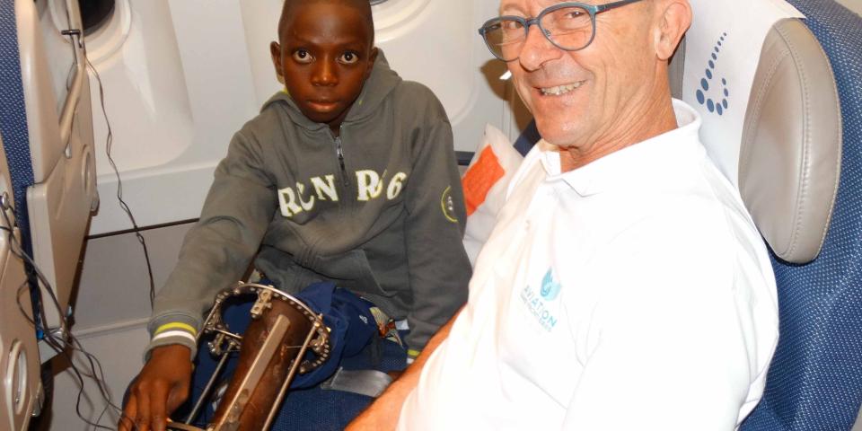 6 april 2019Hard hard om zijn familie te verlaten. Een enthousiast onthaal van Liliane, vrijwilligster bij Piloten zonder Grenzen, van de bemanning van Brussels Airlines, en een goede nacht maken hem al heel vrolijk om, meteen na aankomst de dokter te bezoeken. -