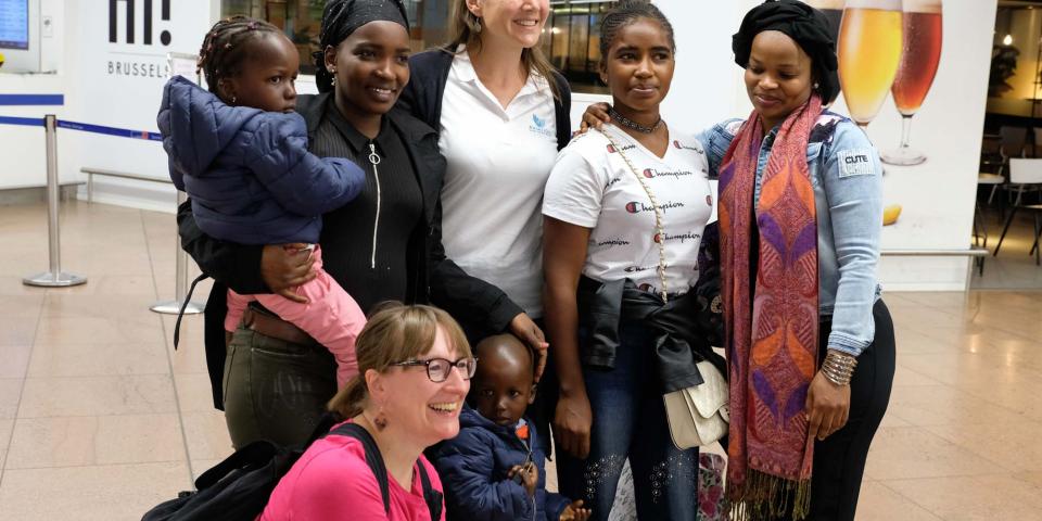 9 juni 2019Myriam vloog naar Conakry om terug te keren met Asmao en de kleine tweeling Hassanatou en Ousmane. Een ondersteuningsmissie door "SESO" (Sociale Dienst Solidariteit) aangevraagd voor een familiehereniging in België. Wat een vreugde bij die mama om haar kinderen terug te zien na een lange scheiding. Bedankt aan de bemanning van Brussels Airlines. -